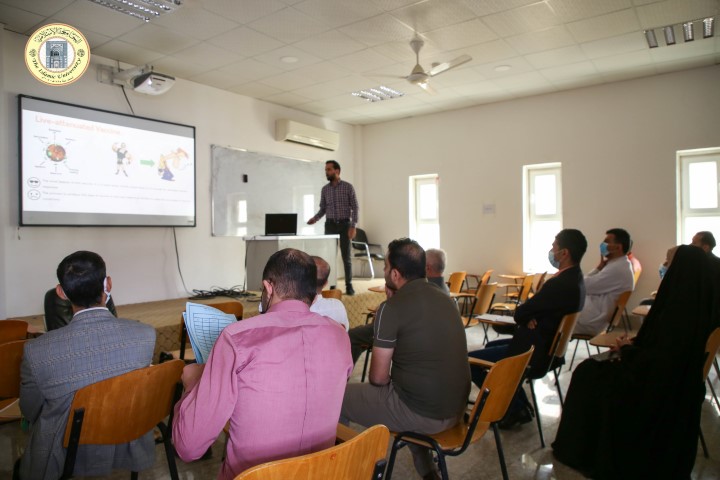 ضمن نشاطات قسم تقنيات المختبرات الطبية في كلية التقنيات الطبية، نظّم قسم تقنيات المختبرات الطبية في كلية التقنيات الطبية ندوة علمية بعنوان: “أنواع لقاحات فايروس كورونا”، لرئيس القسم الدكتور عباس فاضل الملا، حول أنواع لقاحات فايروس كورونا، والطرق المختلفة المستخدمة في إنتاجها.