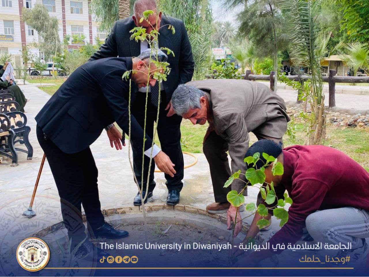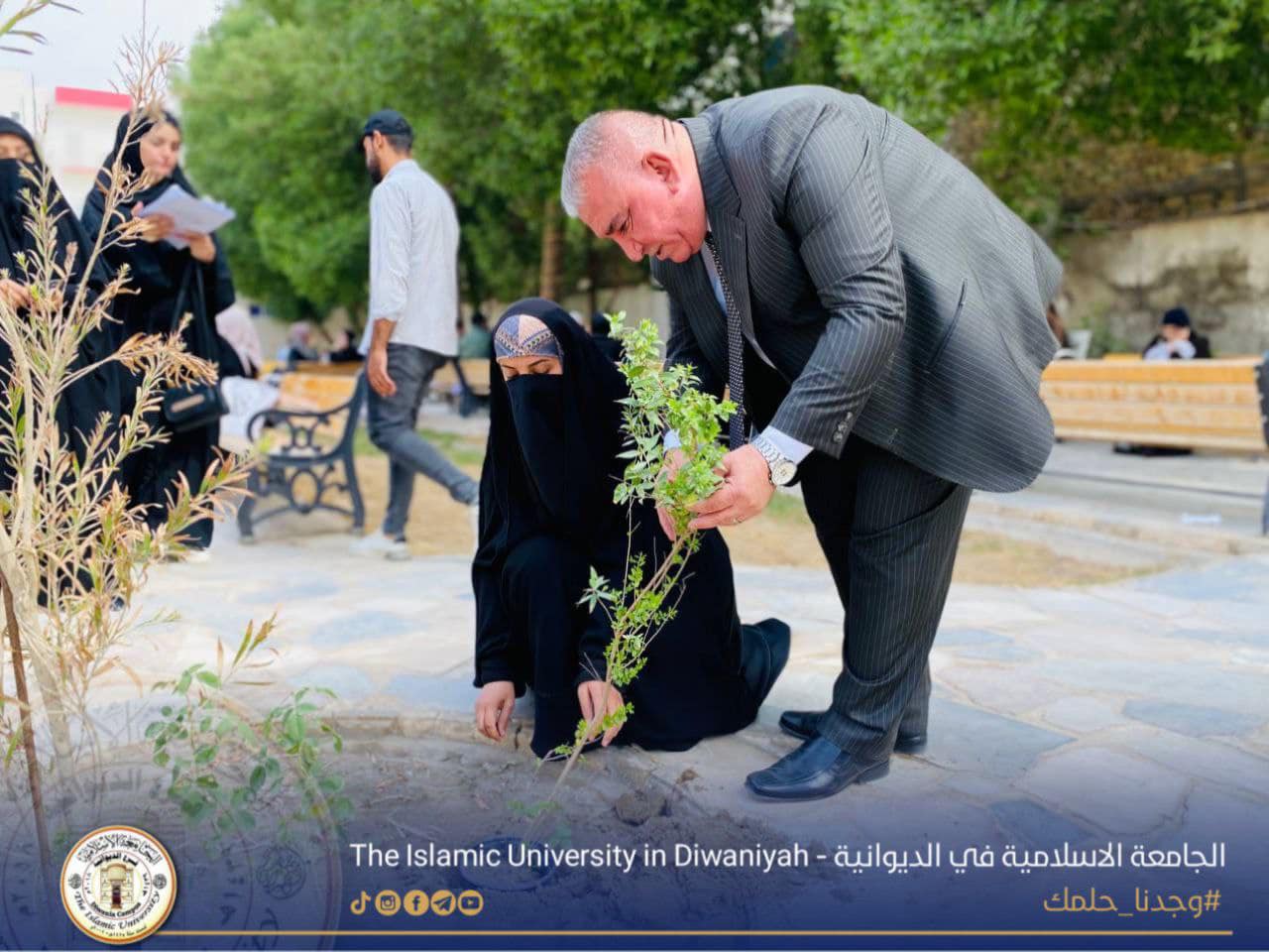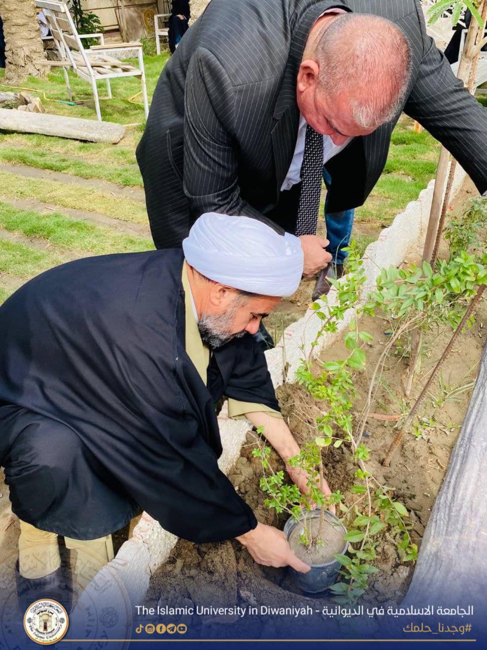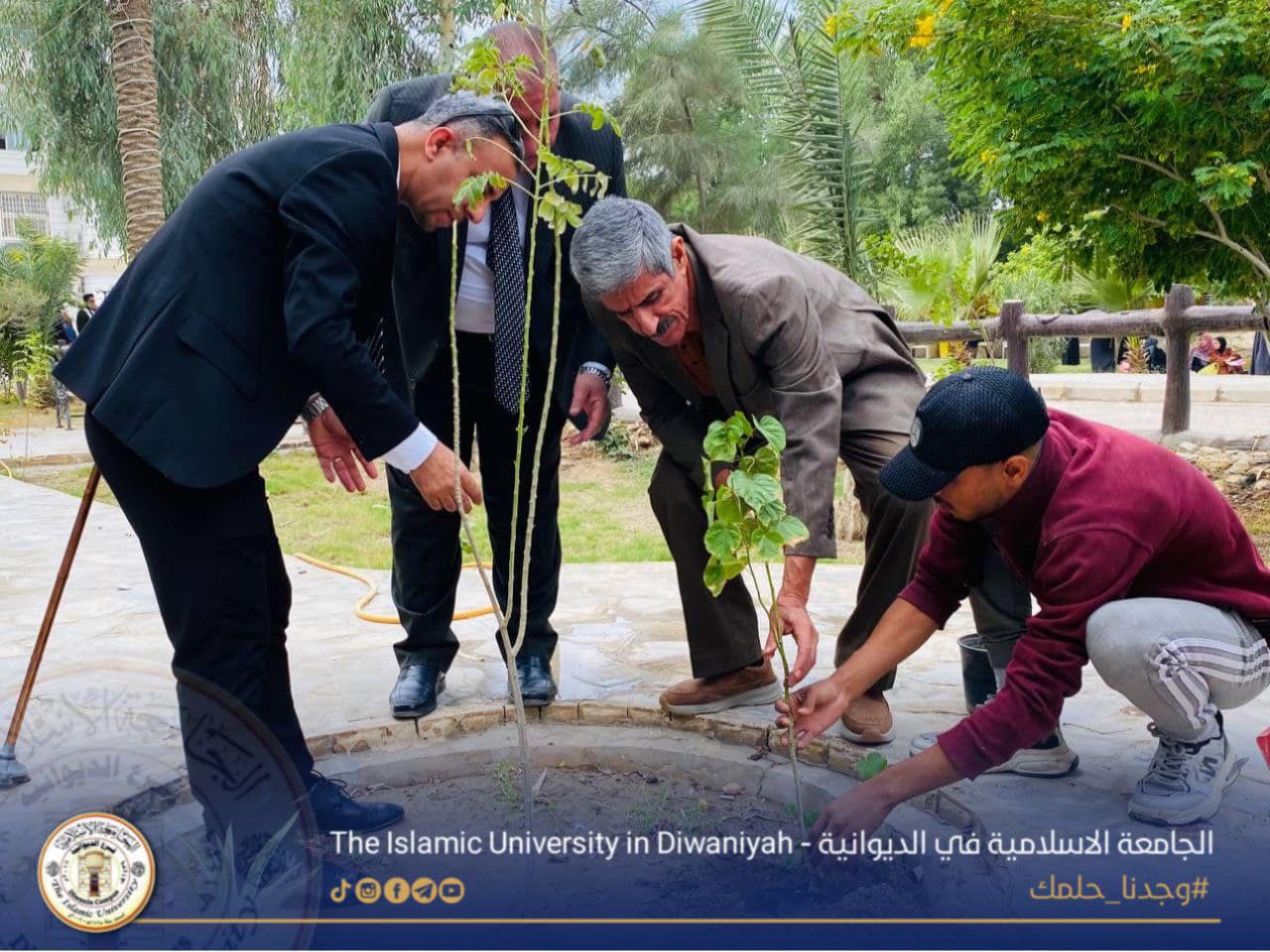 استمرار حملة التشجير في الجامعة الإسلامية في الديوانية التي حث عليها دولة رئيس مجلس الوزراء العراقي