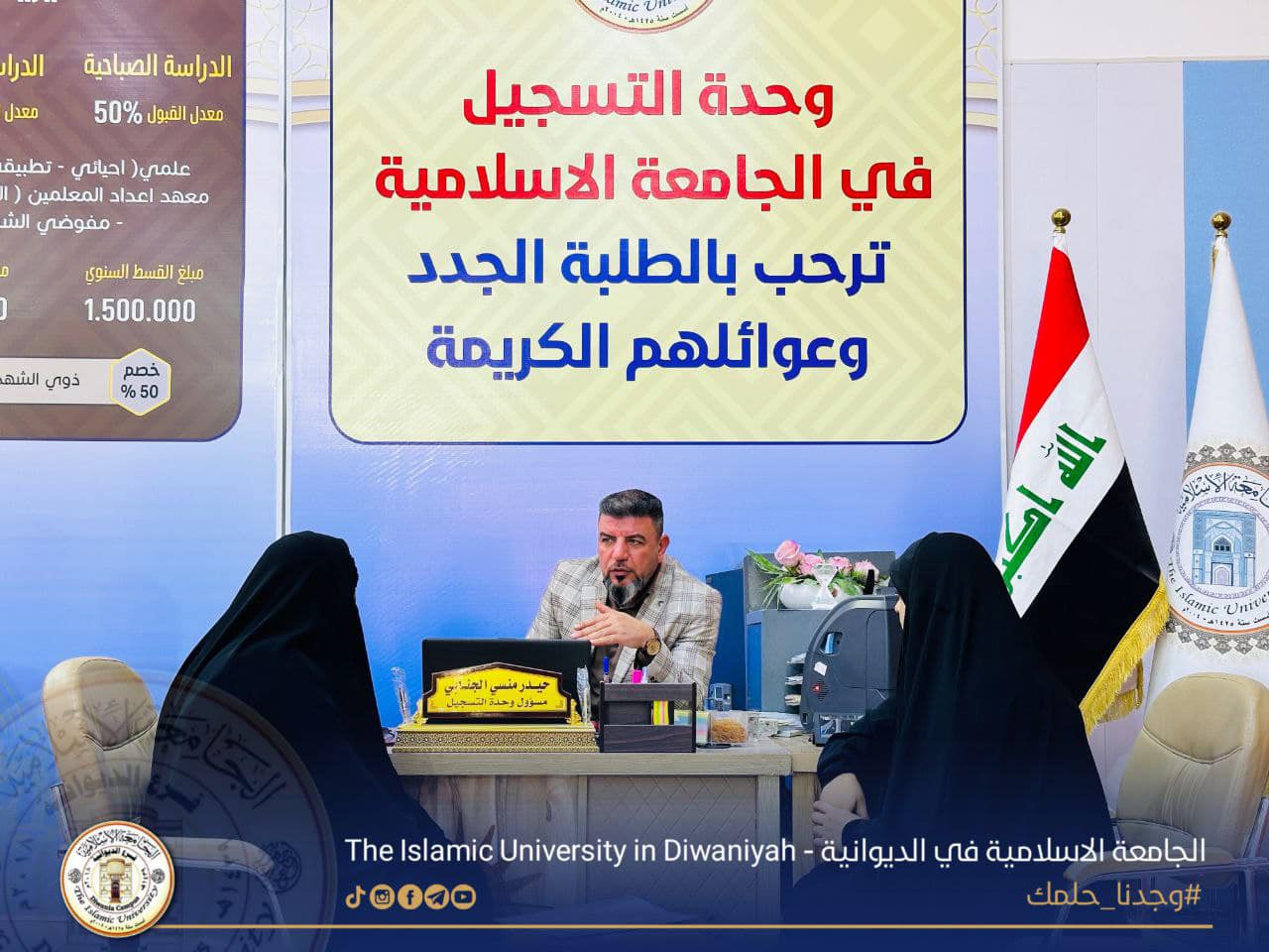 منذ اللحظات الأولى من اعلان وزارة التعليم العالي/ دائرة التعليم الأهلي عن خطوات التسجيل (الاولى والثانية) قسم التسجيل في الجامعة الإسلامية في الديوانية يستقبل عوائلنا الكريمة وأبنائهم الطلبة من أجل إيضاح الية التقديم ومساعدتهم في الخطوتين لإكمال عملية ملئ البيانات على برنامج PEAS والاجابة على استفساراتهم فيما يخص اقسام الجامعة ومدخلاتها والاقساط لكل قسم ناهيك عن تخفيض الأقساط..