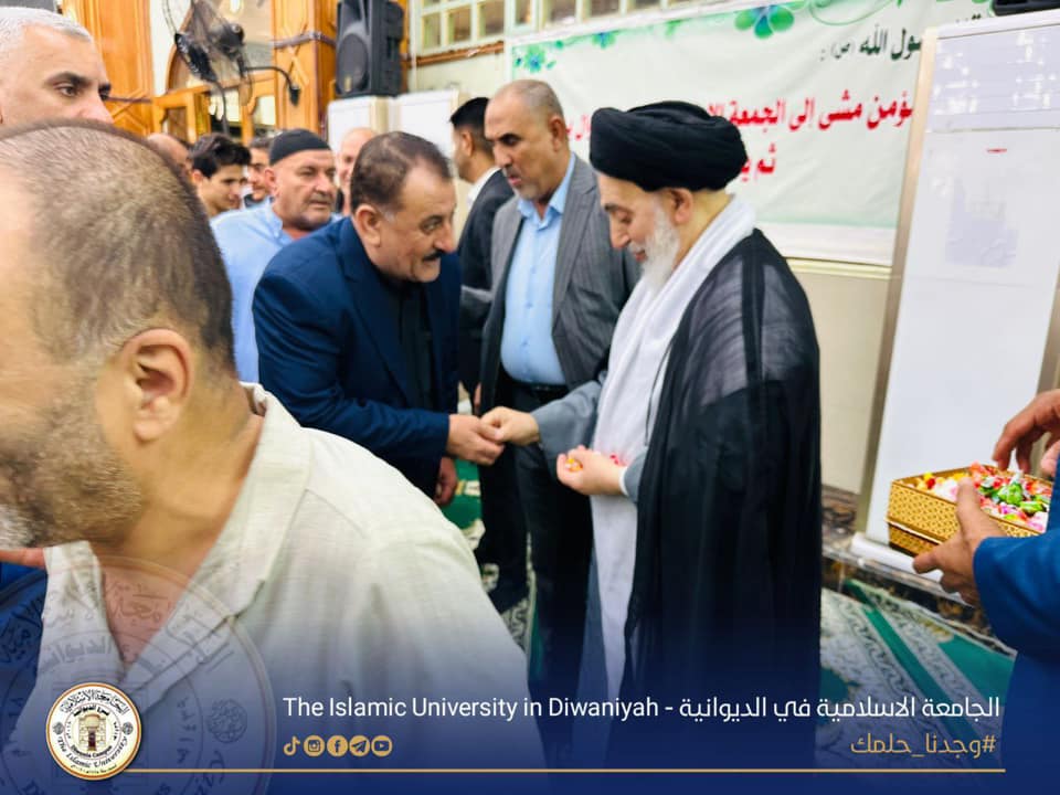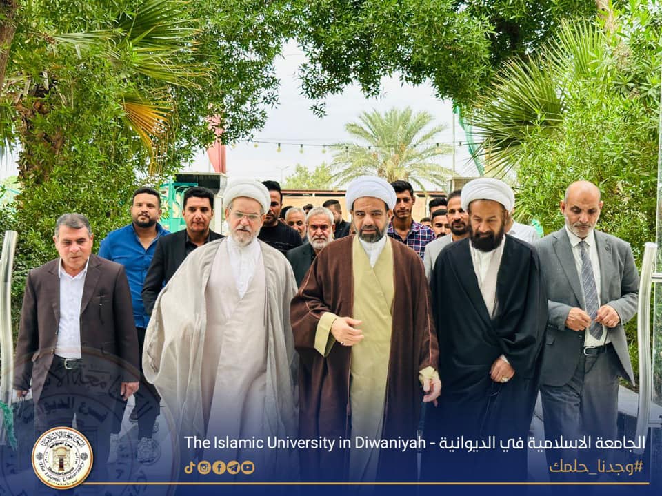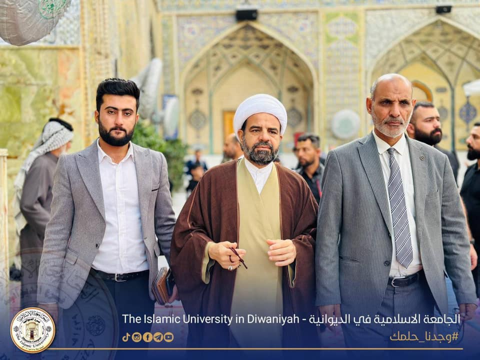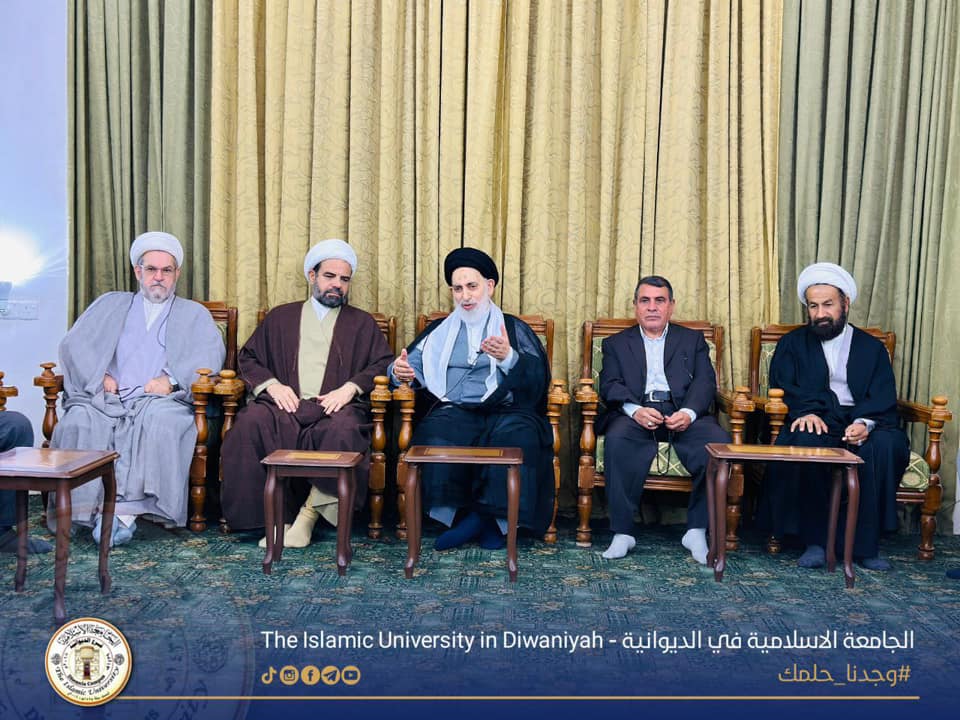 ونقلوا له تحيات جميع الأساتذة والمنتسبين والطلبة وشاكرين له دعمه ورعايته للجامعة الإسلامية في الديوانية