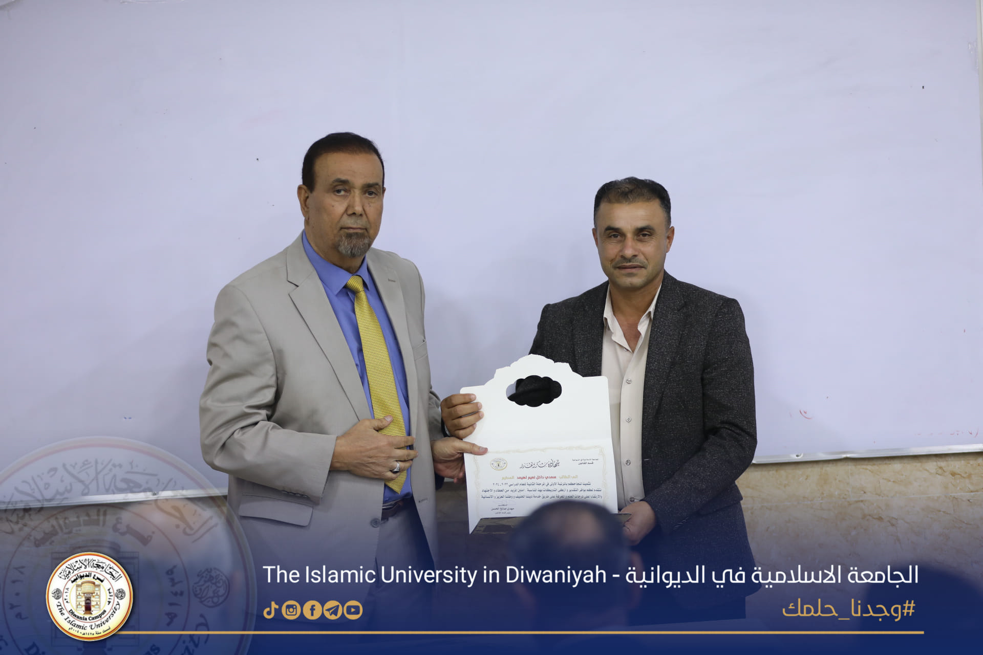 وسط اجواء جميلة سادها التقدير والاحترام بحضور السادة المعاون العلمي والمعاون الإداري ورئيس ومقرر وأساتذة قسم القانون بالإضافة إلى الطلبة الأعزاء ، وبنفس الوقت عمل قسم القانون على تكريم الاستاذ علي مجيد على جهوده المتميزة والكبيرة في القسم بشكل خاص والجامعة بشكل عام طيلة الاعوام الدراسية السابقة..