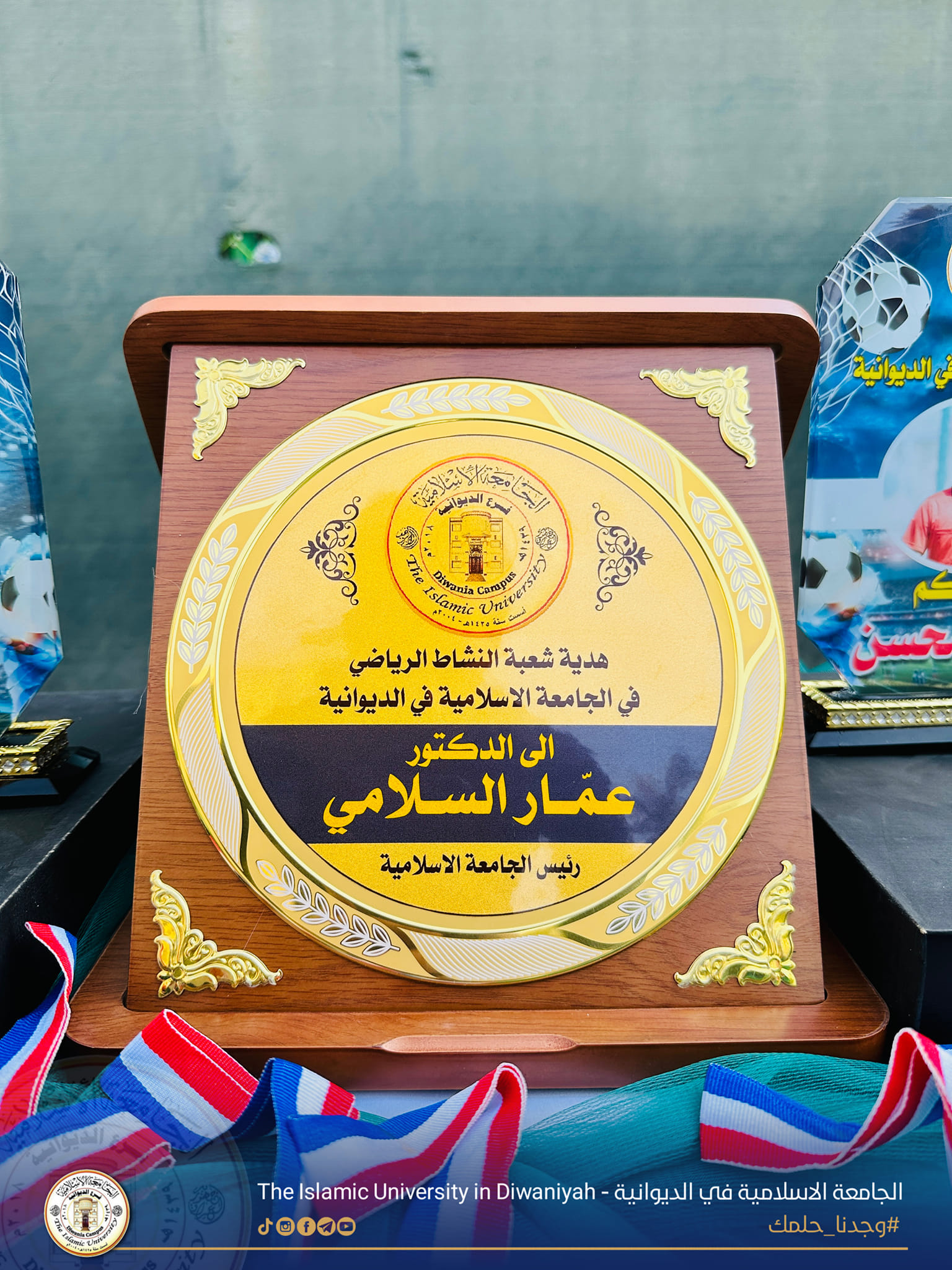 كرم الاستاذ الدكتور عمار عبد الامير السلامي رئيس الجامعة الاسلامية المحترم الفرق الفائزة ببطولة خماسي كرة القدم المقامة على ارضية ملعب الجامعة الاسلامية في الديوانية والتي شاركت فيها الفرق الرياضية لكافة الاقسام العلمية إذ أدار المباراة نخبة من الحكام المميزين مقدمين اداء رياضي، وتصدر البطولةقسم تقنيات الاشعة اذ حصد المرتبة الاولى وجاء في المرتبة الثانية فريق تقنيات الاجهزة الطبية وكانت النتيجة هدفين لتقنيات الاشعة وهدف واحد لتقنيات الاجهزة الطبية وجاءت هذه البطولة ضمن الفعاليات للنشاطات اللاصفية للطلبة والمدعومة من لدن السيد رئيس الجامعة المحترم لتنمية وتطوير الطاقات الشبابية في الجامعة..