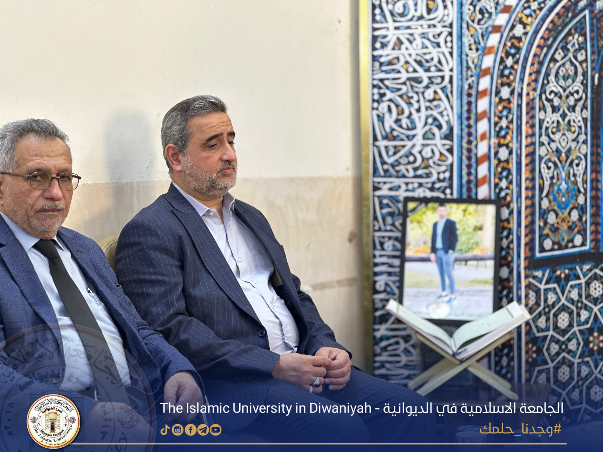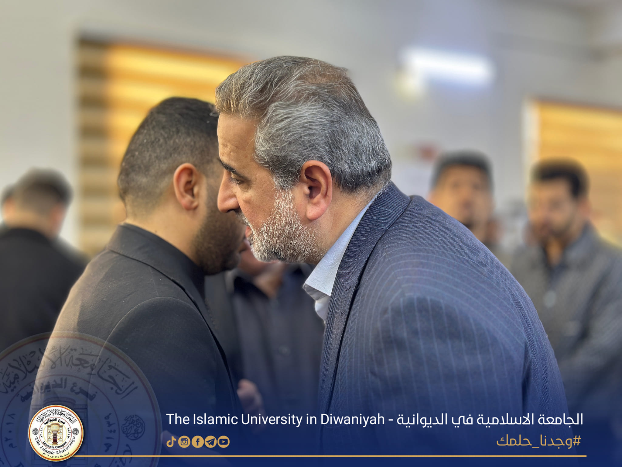 وبحضور السيد رئيس الجامعة الإسلامية المحترم الدكتور عمار السلامي والى جانبه الكوادر الإدارية والتدريسية والضيوف المعزين من مكتب رئيس جامعة القادسية ونقابة المهندسين والشيوخ وطلبة الجامعة وغيرهم من المعزين..