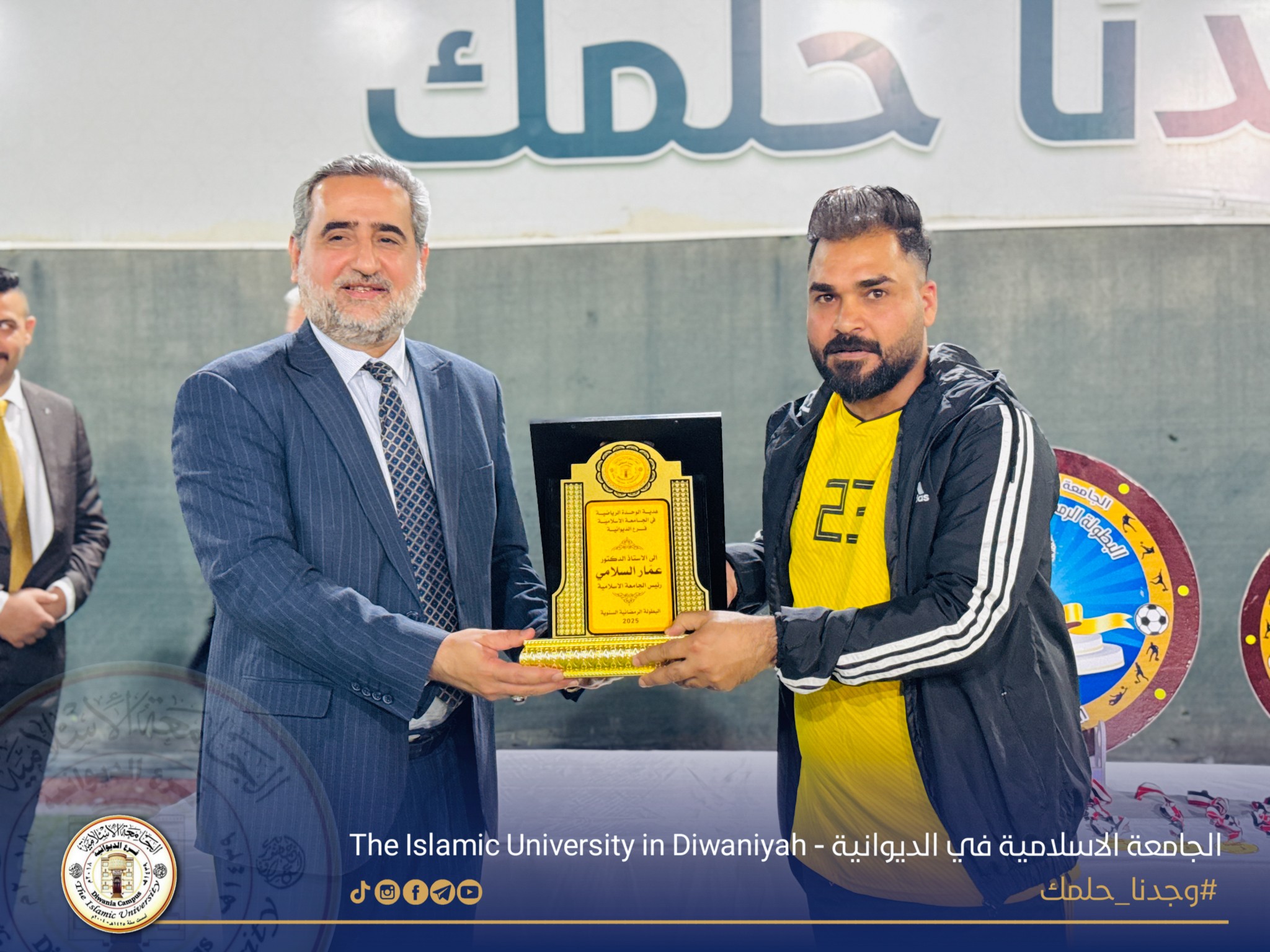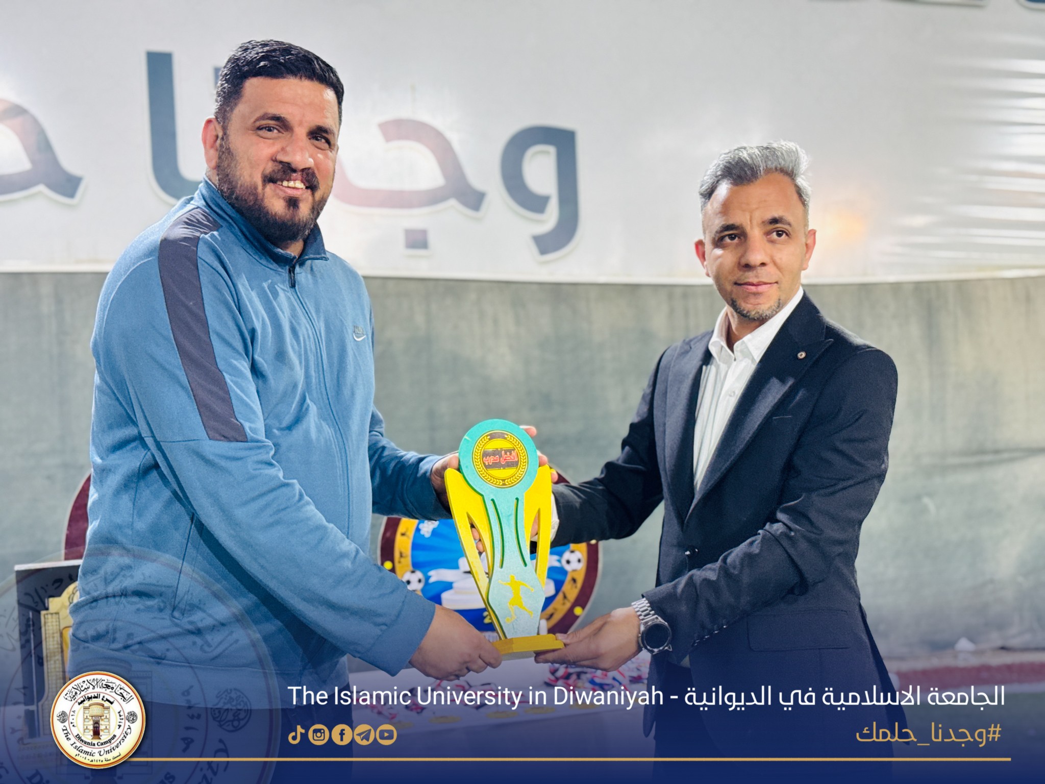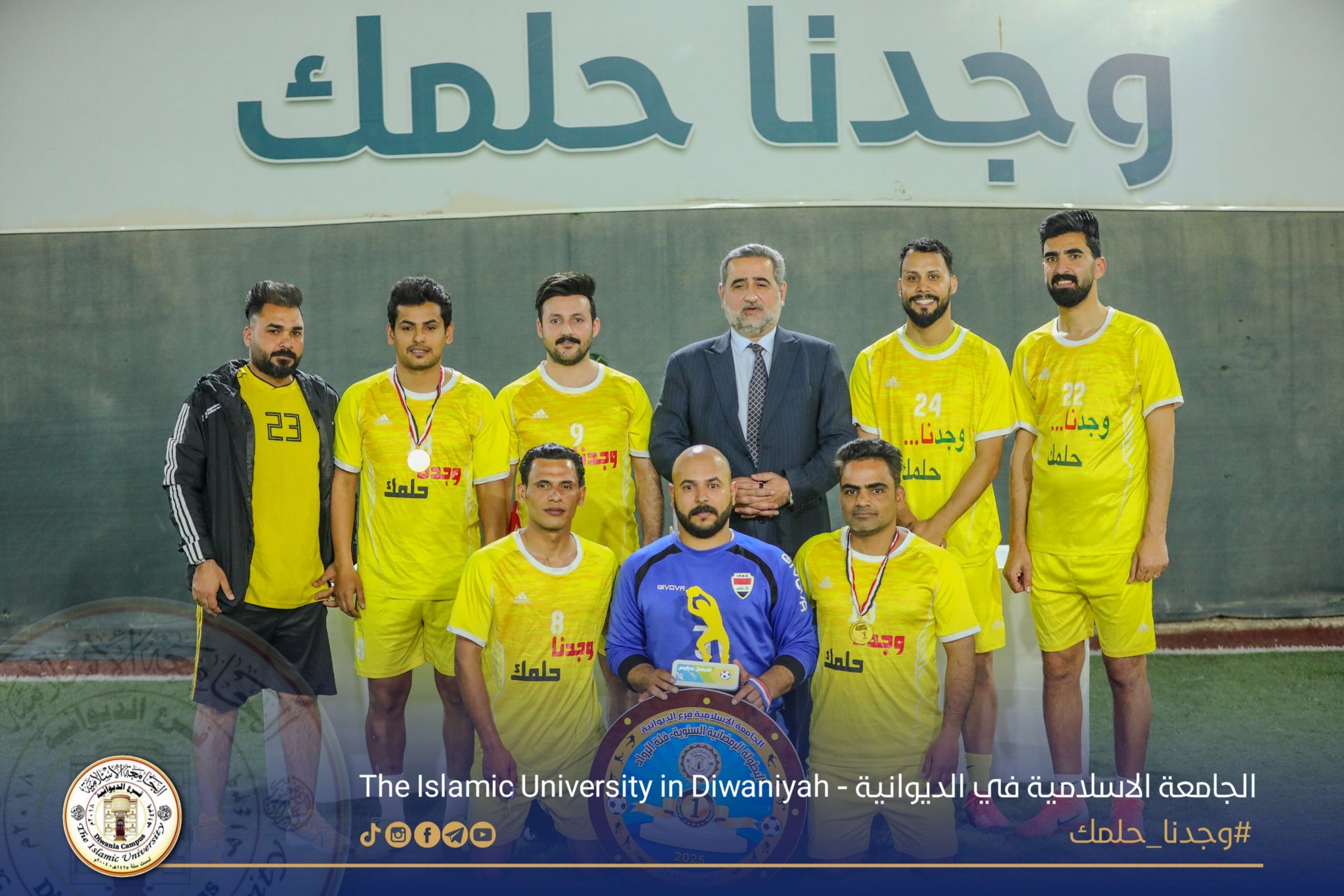 حيث كرم السيد رئيس الجامعة المحترم كلا الفريقين ومرحبا بهم وداعما لهكذا نشاطات رياضية بشكل واسع سواء أكانت في داخل الجامعة وممن يرغب من خارجها لهكذا بطولات مميزة تخرج لاعبين مميزين ومقدما التهاني والتبريكات للفريق الفائز لما قدموه من روح رياضي وإنجاز رياضي مميز..