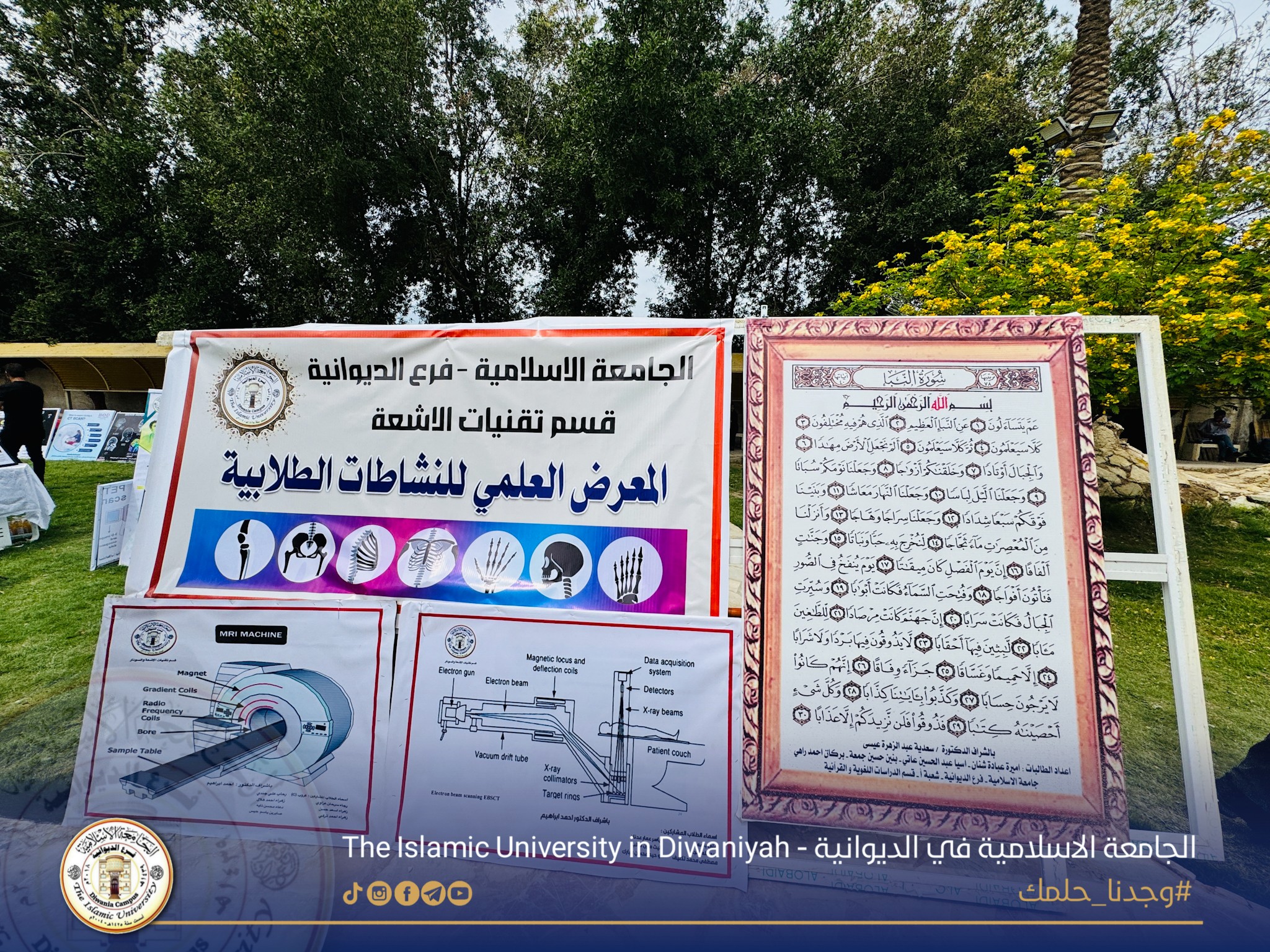 برعاية الاستاذ الدكتور عمار عبد الامير السلامي رئيس الجامعة الاسلامية افتتح المعاون العلمي الاستاذ المساعد جلال علي هاشم المعرض العلمي الاول للنشاطات الطلابية لقسم تقنيات الاشعة في الجامعة الاسلامية فرع الديوانية والذي تضمن العديد من اللوحات العلمية والتي تتضمن في محتواها التجارب المختبريةالعملية والتطبيقية والمفردات العلمية التعليمية ضمن النشاطات اللاصفية للطلبة، هذا وقد شارك في الافتتاح الدكتور ابراهيم صالح المعاون الاداري وعدد من السادة رؤساء الاقسام العلمية واساتذة وطلبة الجامعة الاسلامية في الديوانية..