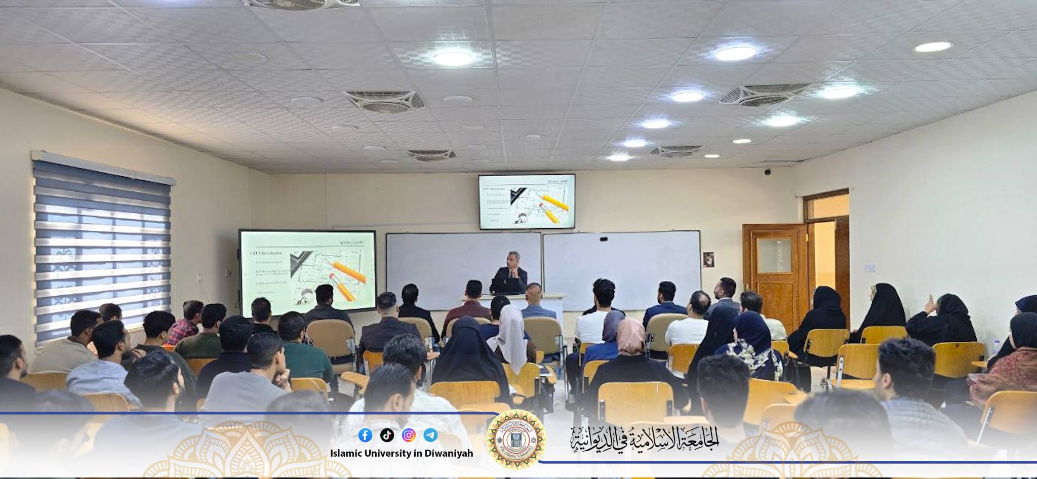 قدّم الورشة د. قاسم جمعة علي العتابي التدريسي في القسم، وتناول فيها المحور الأساس الخاص بكيفية بناء مشروع التخرج بصورة صحيحة، ابتداءً من اختيار الفكرة المناسبة، ثم كتابة الجانب النظري وفق منهجية علمية رصينة، وصولًا إلى تنفيذ الجانب العملي باستخدام الأدوات والتقنيات الحديثة.