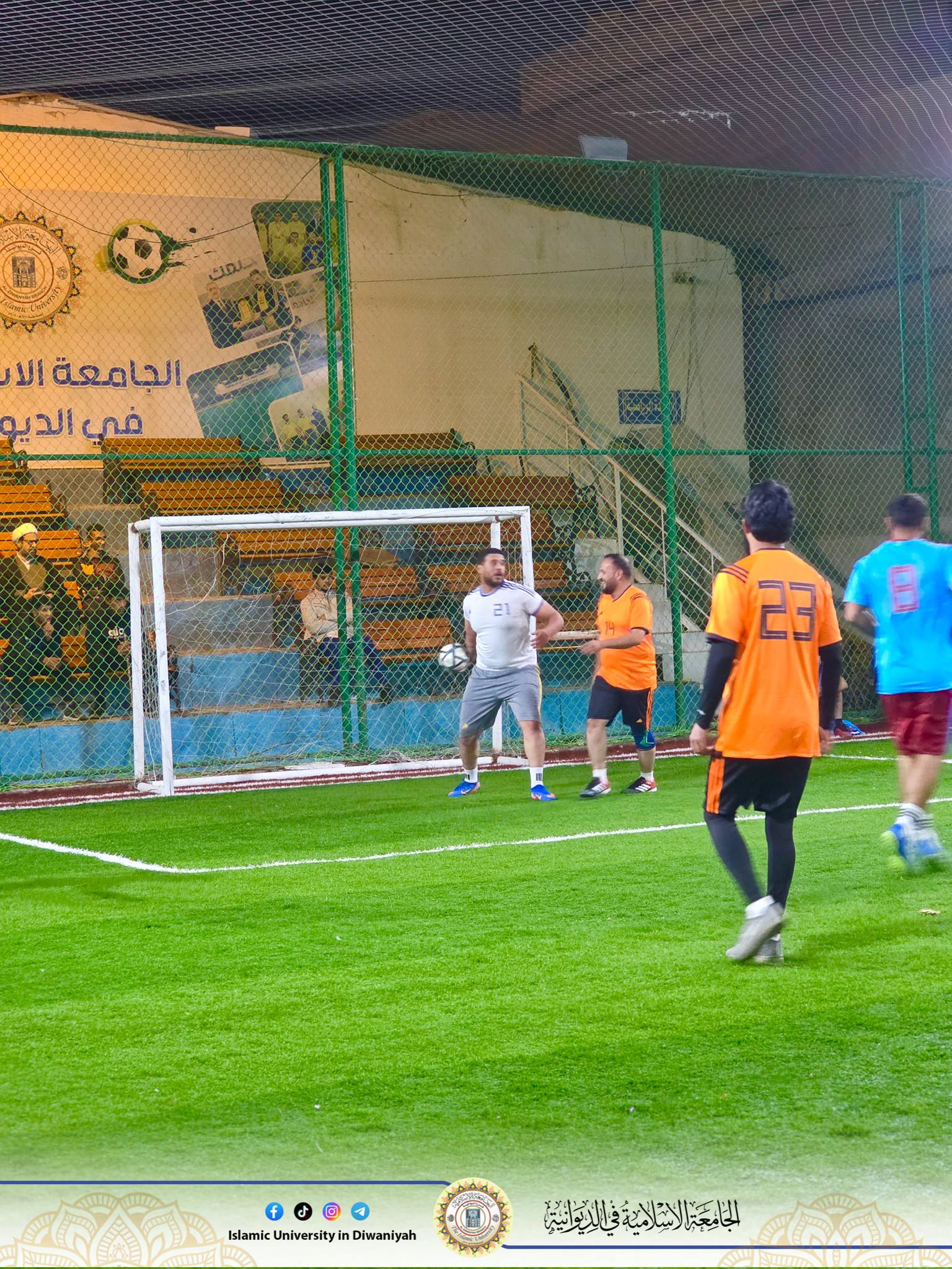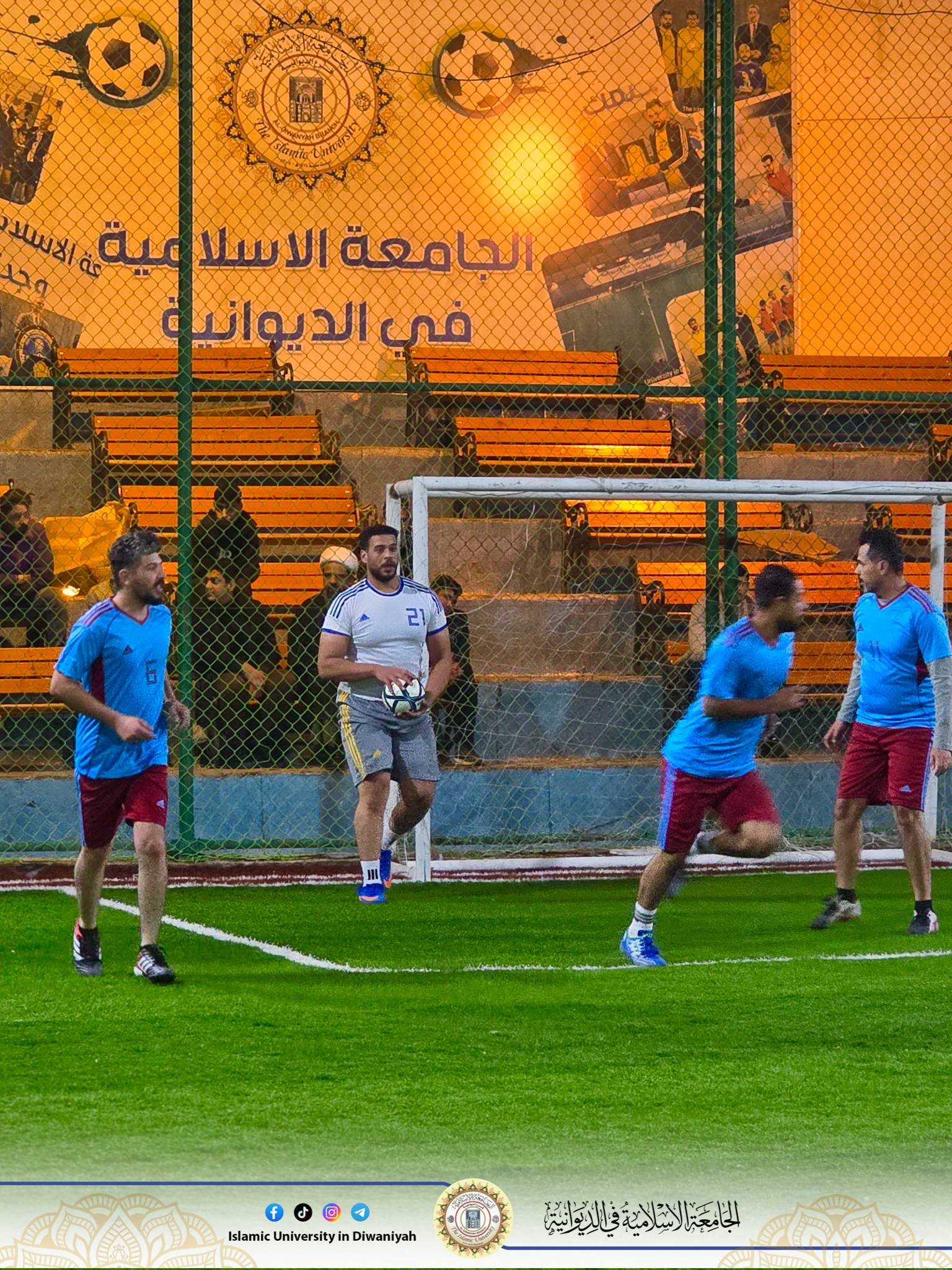 الأستاذ جلال علي هاشم، وبمتابعة المعاون الإداري الدكتور ابراهيم صالح انطلقت مساءا بطولة خماسي كرة القدم الخاصة بموظفي الجامعة والتي أقامتها وحدة النشاطات الرياضية بمسؤولها الاستاذ منار عبدالزهرة والتي شهدت مشاركة عدد من الفرق، وذلك على أرضية ملعب الجامعة بعد انتهاء الدوام الرسمي.